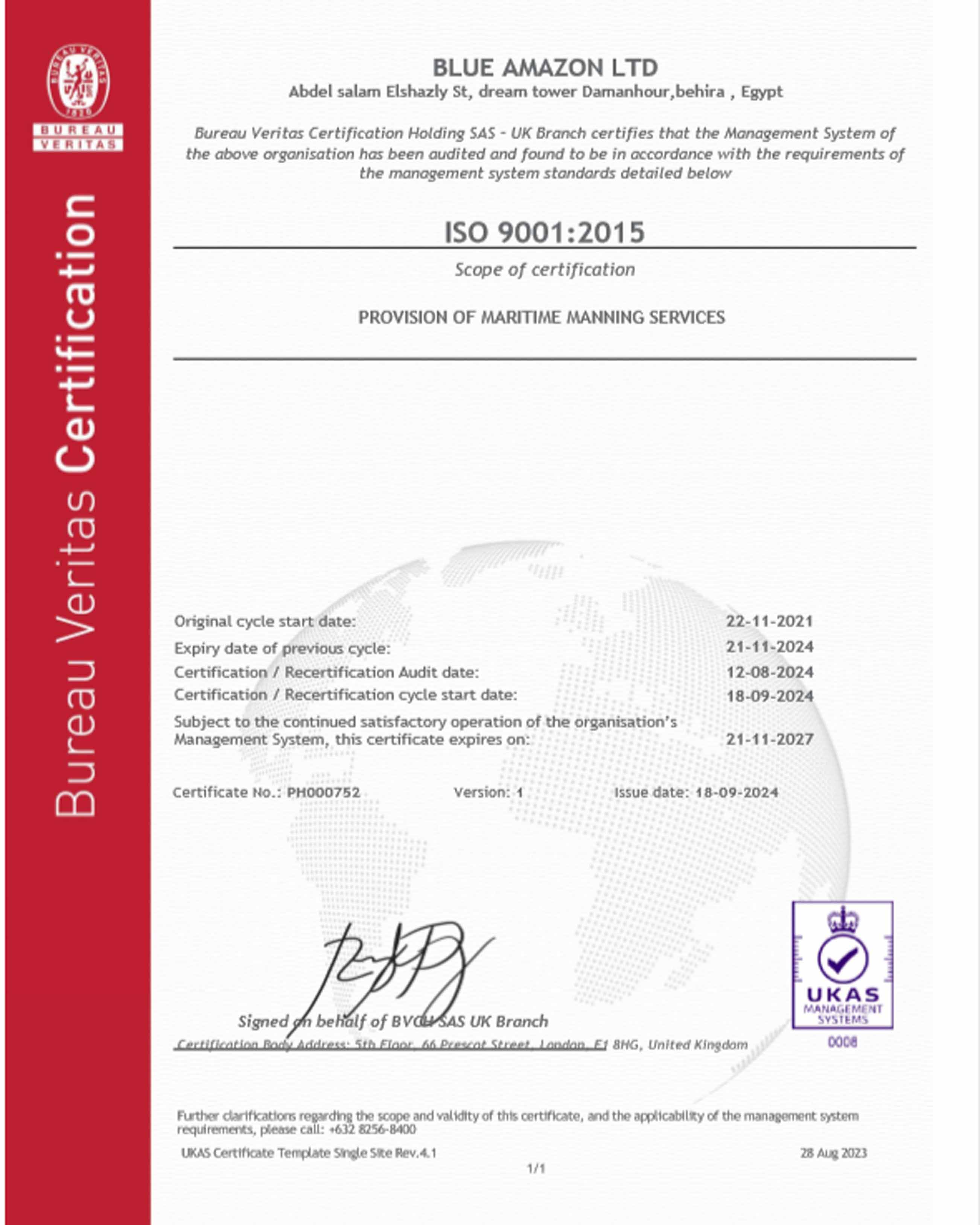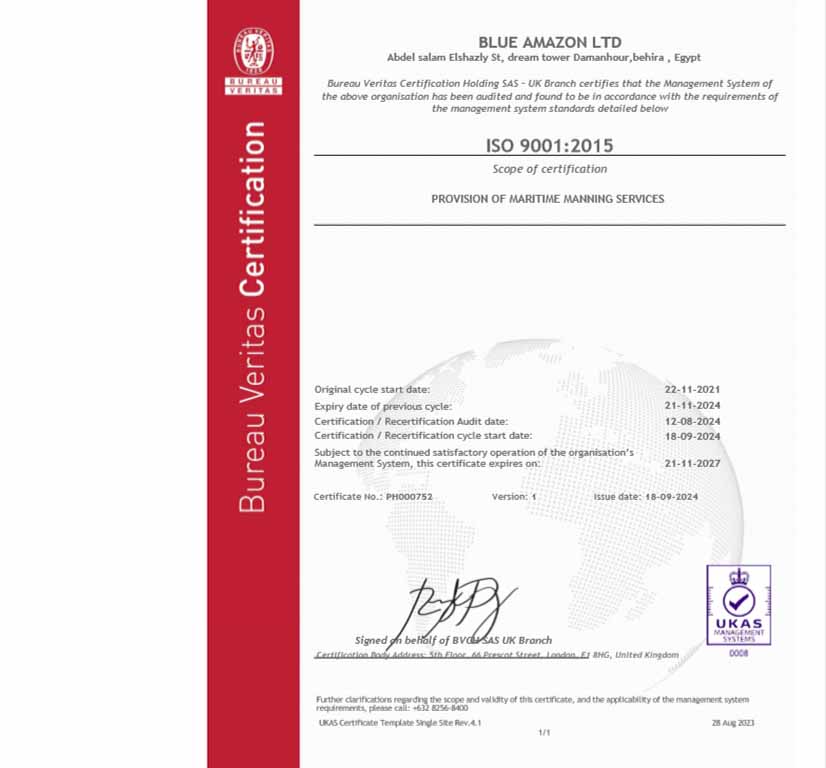 Our company works in accordance with all the requirements of MLC 2006 Certification and adheres to National License requirements.